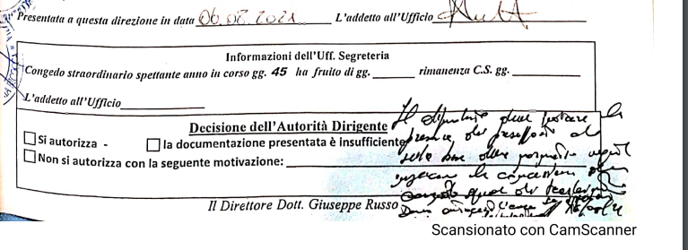 Dopo Catania Piazza Lanza, anche il direttore di Bicocca (che avendo la direzione di più' istituiti, le rifiuta tutte) sta perseverando sulla strada della non concessione (all.2-istanza di un dipendente a cui è stato negato il congedo “speciale” di trasferimento), confermando oggettivamente che la nota di riscontro del PRAP (all.3) concernente la questione, è risultata disattesa.Pare che proprio in quel di Bicocca,il direttore abbia diffidato (pena l'elevazione di provvedimento disciplinare) quei lavoratori che hanno reiterato la richiesta!...LEGGI IL CARTEGGIO